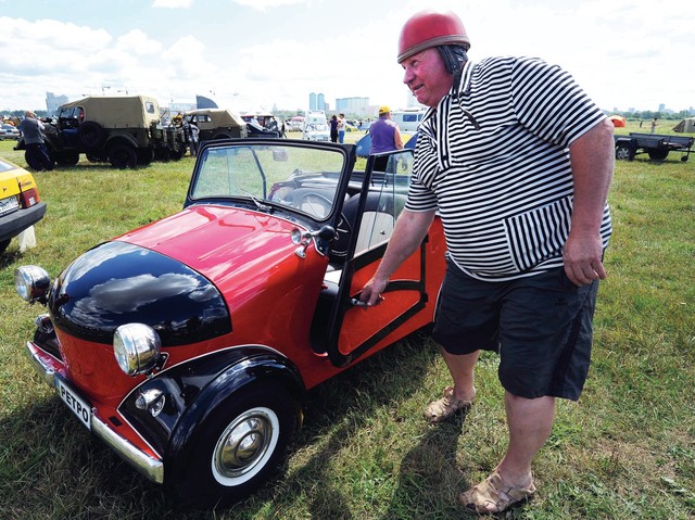 لقطة (أ ف ب)روسي يحتفظ بمركبة من نوع (ميني كوبر) صغيرة من نوع ( S-3A SMZ) من العهد السوفييتي المنقرض في معرض للمركبات في العاصمة موسكو أمس حيث لا يزال يحافظ على جودتها ومتانتها وقد تم إنتاج هذا النوع من المركبات بين (1958 حتى 1970).