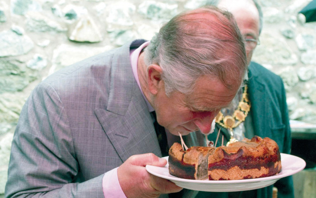 زيارة رويترزالأمير تشارلز يشم رائحة كعكة حمل جزءاً منها إلى بيته بعد زيارة إلى مشروع هارنرلاند السكني في تورو بإنجلترا. قام الأمير بالزيارة بمناسبة مرور 60 عاماً على تتويجه دوق كورنوال.