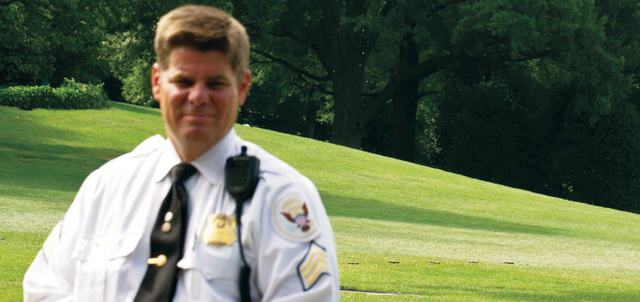 حملة أ ف بأحد عناصر الحماية الرئاسية يطمئن على إقلاع الطائرة الرئاسية العمودية من حديقة البيت الأبيض بتمهل، حاملة الرئيس أوباما في رحلة جديدة لمتابعة حملته الانتخابية في ولاية فرجينيا أمس.