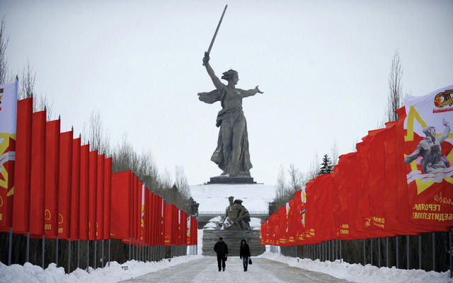ستالينغراد... محطة تاريخية أف بعالياً في الأفق ينهض النصب التذكاري المعروف باسم "الوطن الأم يدعو للقتال"، الذي تركزت عليه العيون أول من أمس بمناسبة احتفال الروس بذكرى انتصار الجيش الأحمر في معركة ستالينغراد على القوات النازية الغازية.
