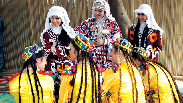 دلهي.. فولكلور شعبي أ.براقصات من كازخستان بعد أدائهن عرضاً راقصاً في معرض سراج كاند في مدينة دلهي الهندية، أول من أمس، فيما تتواصل الفعاليات على مدار أسبوعين بعرض ثقافي ومصنوعات شعبية لمدن الهند وجيرانها الآسيويين.