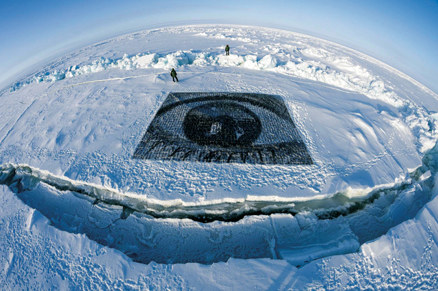 حملة إيه بي أيصورة ضخمة لعين مركبة شارك فيها أكثر من ألف مصور من العالم ضمن مشروع فني ضخم تنظمه (السلام الاخضر) للحفاظ على سلامة القطب الشمالي ونقل اللوحة على الجليد في القطب مجموعة ناشطين.