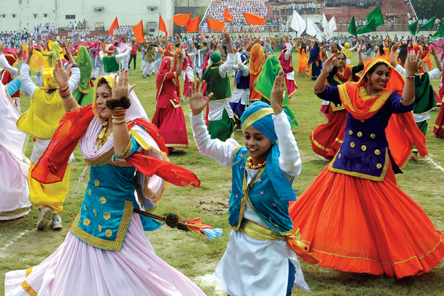 الهند.. تمرين الاستقلال أ ف بطالبات مدارس في الهند بالزي التقليدي يجرين تمارين ويتدربن على عروض فلكلورية لكي يؤدينها يوم عيد الاستقلال في استاد جورو ساناك في مدينة امريتسار. تحتفل الهند بعيد استقلالها عن الحكم البريطاني الـ66 اليوم 15 أغسطس.