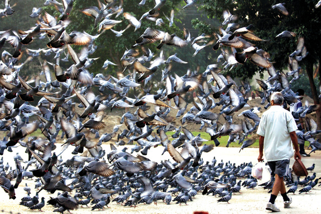 أسراب الحمام إيه بي إيههنديٌ يسير بين أسراب من الحمام، كي يملأ القدر الفخاري الذي يحمله بالماء لأجل الطيور في حديقة رام باغ في أمريستار بالهند أمس. وغالباً ما يُطعم السائرون في الصباح الحمام مختلف أنواع الحبوب كجزء من نشاطهم اليومي .