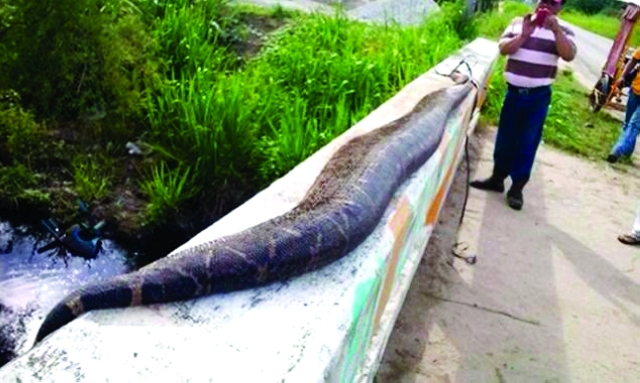 انهال سكان قرية مكسيكية على ثعبان عملاق، 25 قدماً، بالضرب حتى الموت. وقد خشي الأهالي أن يقوم المخلوق الضخم بابتلاع أحد الأطفال، فقاموا بقطع رأسه بعد رصده ممدداً على مسار سكة الحديد.