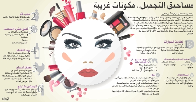 مساحيق التجميل تعزز الجمال والجاذبية والثقة بالنفس، ولكنها مكوناتها الغريبة تثير الدهشة كثيراً، وعلى سبيل المثال لا الحصر يؤكد علي النجار، عضو في جائزة زايد الدولية للبيئة، وستفان أهلغرين، المدير التنفيذي لإحدى الشركات المتخصصة في الحلول البيئة، أنه تم البدء في إنتاج مكياج ومستحضرات العناية بالبشرة من إطارات السيارات التالفة، ذلك أنها تعد من أخطر أنواع النفايات وتهدد البيئة والإنسان معاً، نظراً لصعوبة التخلص منها، حيث عمل فريق من المتخصصين منذ 8 سنوات على إعادة تدوير الإطارات لإنتاج مساحيق التجميل.