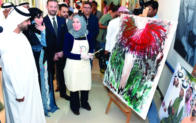 تحولت ردهة الاستقبال في مركز راشد للمعاقين، أمس، إلى أشبه بمرسم فني مفتوح، بعد أن التقى فيه أكثر من 26 فناناً من 16 دولة، ليعلنوا انطلاق فعاليات دورة ملتقى دبي التشكيلي الدولي الثانية، تحت شعار «تغريدات ملونة» المستلهمة من تغريدات صاحب السمو الشيخ محمد بن راشد آل مكتوم نائب رئيس الدولة رئيس مجلس الوزراء حاكم دبي، والتي تعبر عن روح الجمال والقيم السامية التي تتبناها الإمارات، ليقوم المركز بعد ذلك بنشرها في كتاب يحمل عنوان «ومضات من تغريدات محمد بن راشد الإنسانية» ويتطلع المركز إلى ترجمتها للغات ووسائل تعبيرية مختلفة.
