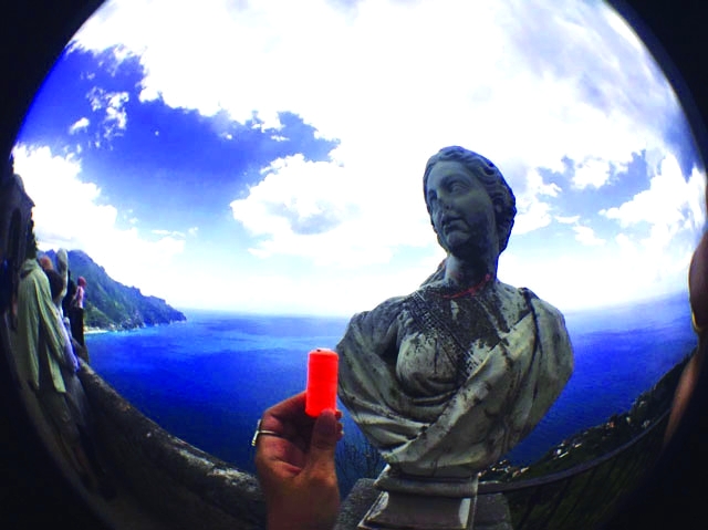 خيوط برتقالية اللون بين القطع الصخرية وأخرى مربوطة بأغصان الأشجار، وملفوفة على منحوتات أثرية من الحضارة الإغريقية، هو ما تركته عائشة في كل مكان زارته، لتكمل من خلال سفرها لإيطاليا، مشروعاً بدأته منذ عامين، وكان أخيراً محور مشروع تخرجها من الجامعة.