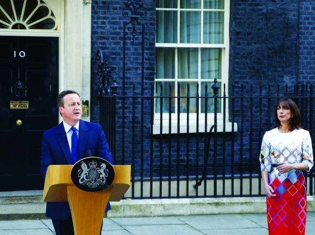 من رماد هزيمة الاستفتاء وأنقاض الإذلال المحرج، خرج رئيس الوزراء البريطاني ديفيد كاميرون إلى العلن، ليعلن على وقع هتافات انتصار خصومه التي لا تبعد سوى مئات الياردات تسليم دفة القيادة لخلف أكثر استحقاقاً. وحده فستان سامنتا سيدة «10 داوننغ ستريت» المزركش كان فرحاً باللحظة التي بدت ثقيلة على زوج أوشك على البكاء عدة مرات، لاسيما تحت رشقات انتقادات الناخبين وسخريتهم من سياساته الاستسلامية.