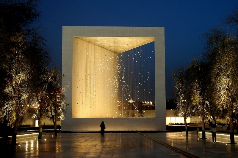 ووصف الموقع، الذي تديره شركة «آيريس ميديا»، الإعجاز الهندسي في مبنى صرح زايد المؤسس: «خلال الليل، تتلألأ الأشكال الهندسية بشكل يحاكي نجوم السماء، التي لا تزال تشع نوراً من على بعد آلاف السنين الضوئية، وتُرشدنا إلى الطريق الصحيح». كما بين أنه قام بابتكار هذا العمل الفني، رالف هيلمك، الفنان العالمي المعروف في مجال الفنون الإنسانية.
