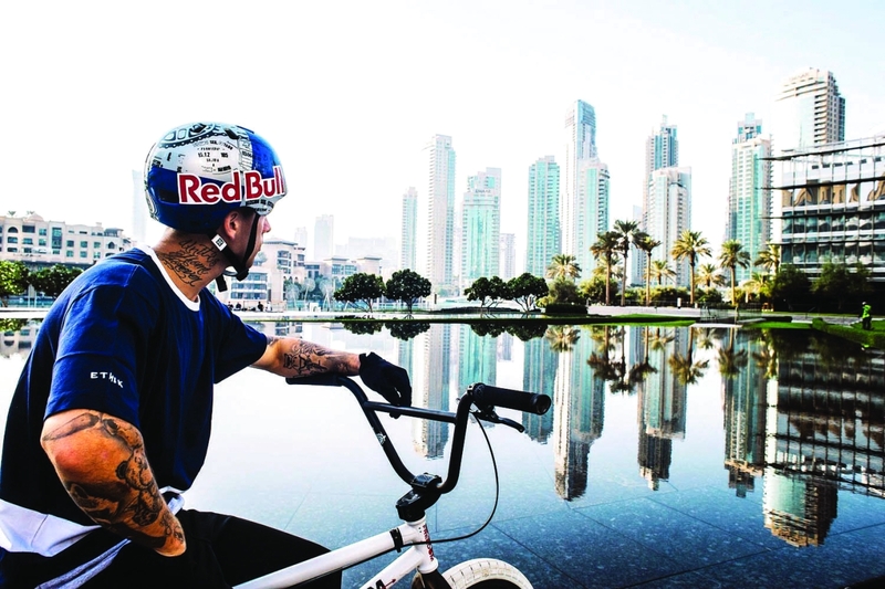 قيادة الدراجات الهوائية على المنحدرات، شغف يصاحب أولئك الذين احترفوا عشق المغامرة، والذين تعودوا البحث عن أماكن توفر لهم مثل هذه الأمكنة، وترضي شغفهم، ودبي كانت من بين المدن التي فتحت قلبها قبل حدودها، أمام هؤلاء، وعلى رأسهم البريطاني كريس كايل، الذي عشق منذ نعومة أظفاره دراجته الهوائية على المنحدرات الخطرة، حيث أتاحت دبي أمامه الفرصة لخوض تجارب مثيرة، خلال تصويره مشاهد فيلم «تسقط في دبي» (Dropping in on Dubai)، الذي انتجته دائرة السياحة والتسويق التجاري بدبي، من أجل الترويج لـ «دانة الدنيا»، التي يقع كل من يزورها في غرامها.