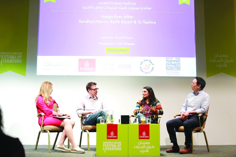 كما شاركت المؤلفة سانديا مينون وكيث ستيوارت وتاي تاشيرو في جلسة بعنوان «عاشوا بسعادة وهناء»، والتي بحثت موضوع النهايات في القصص والروايات، والتي يغلب عليها الطابع الرومانسي أو السعيد.
