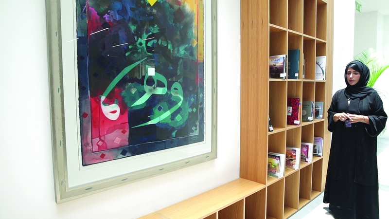 وتوضح: أما التصاميم الداخلية المستوحاة في المكتبة فذات طابع فني، حيث اللوحات التشكيلية والمجسمات والمنحوتات التي تنتشر في كل زوايا المكتبة لبعض الفنانين الإماراتيين والعالميين.