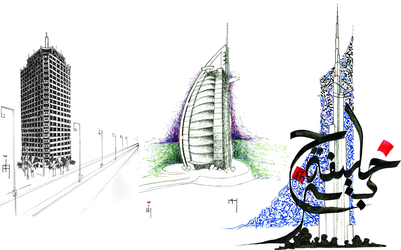 ما إن تلج الردهة الرئيسية في فندق انتركونتيننتال دبي فستيفال سيتي، حتى تشعر بكمية الجمال الذي يتدلى على جدرانه، عبر لوحات اختلفت في أحجامها، وألوانها أيضاً، جلها لعبت أيقونات دبي دور البطولة فيها، بعد أن تجردت من ألوانها باستثناء الأبيض والأسود، وهما لونان آثرت الفنانة الهندية ريا شارما، أن تفصل منهما معالم «دانة الدنيا»، لتقدمها بصورة تجريدية، قادرة على منح الجمهور فضاء أوسع، لأن يعاين تفاصيل تلك الأيقونات، بدءاً من برج خليفة، البرج الأطول في العالم، ومروراً ببرج العرب، وبأوبرا دبي ومشهد من دبي القديمة، إلى جانب عديد البنايات التي تعانق السماء، وما إن يحل الليل حتى تتحول إلى لآلئ تنير سماء الإمارة.