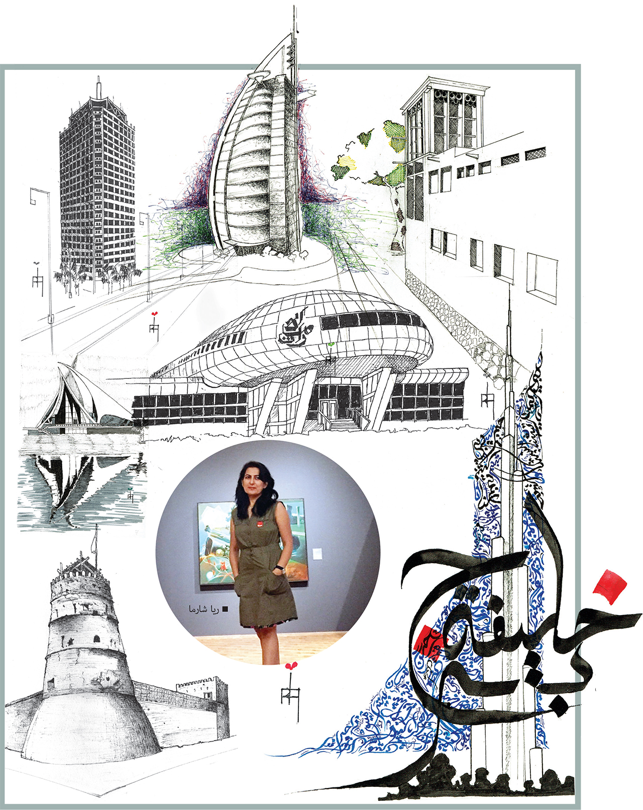 «منذ سنوات تملكني شغف الفن، وخلالها استطعت أن أطور من أسلوبي الفني التكعيبي، والذي أعتقد أن جزءاً كبيراً منه مشتق من أصول الهندسة المدنية والمعمارية»، هكذا تصف ريا شارما في حديثها مع «البيان» أسلوبها الفني، مشيرة إلى أنها استفادت كثيراً في فنها من خبرتها في الهندسة المدنية، التي منحتها الفرصة لمعاينة مشهد دبي الجمالي بطريقة أخرى. وقالت: «في الواقع، إن طبيعة المشهد الجمالي الذي تتمتع به دبي، لافت وفيه قدرة عالية على أسر عيون كل من يطالعه، خاصة في أوقات الليل، حيث تنعكس أضواء البنايات على صفحات المياه، لتقدم لنا مشهداً أخاذاً، يذكرنا بمدى قدرة دبي على بث الحياة في الشوارع والبنايات والأزقة». وتضيف: «أحياناً أعتبر نفسي محظوظة بكوني مهندسة مدنية، وهو ما منحني القدرة على معاينة المشهد المعماري العام لدبي بطريقة مختلفة، لا سيما أن معظم البنايات في دبي تتمتع بتصميم معماري يجمع بين الجمال والغرابة، وفيه تطبيق لمختلف النظريات والحلول الهندسية، التي تتيح لنا إنشاء بنايات غير تقليدية، وهو ما أثر على المشهد الجمالي للإمارة، وحول تلك البنايات إلى أيقونات رائعة الجمال».
