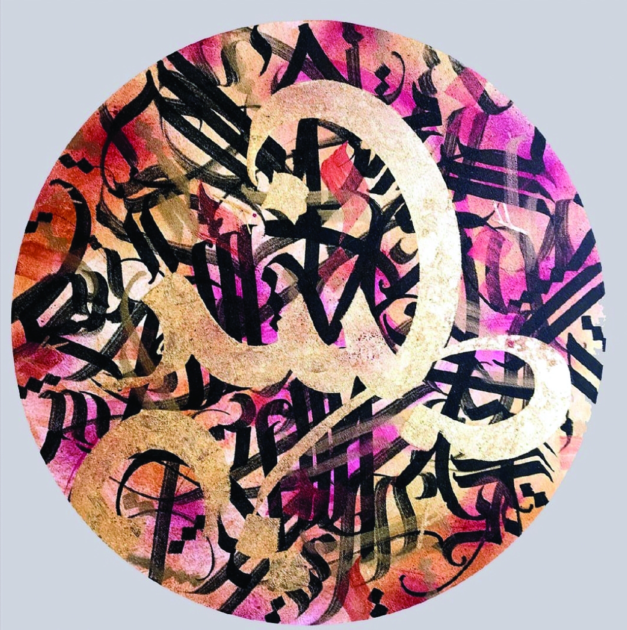 في المعرض ذاته، بدا فن الخط العربي أو «الكاليغرافيتي» مغرياً للفنانة الأوكرانية فيرا دي جي التي مزجت عبر لوحاتها الثماني بين الأساليب الأوروبية وفن الخط العربي، ولكن الملاحظ هو ميلها نحو الشكل الدائري، لكونه يمثل احتضاناً للأفكار، معتمدةً في الوقت ذاته اللون الذهب الذي يشي بالجانب المشرق من الحياة والأمل الذي تمنحه المرأة عادة للمجتمع.