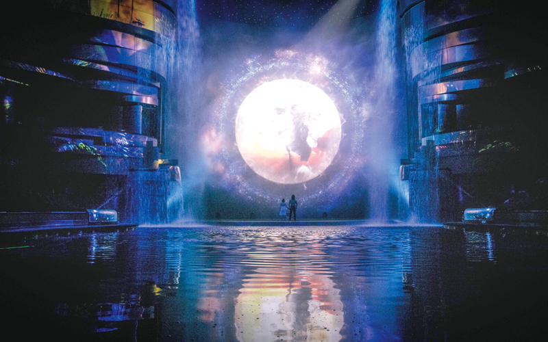 يتميز المسرح المائي الذي يتّسع لـ1300 مقعد باستخدام تكنولوجيا متطورة، حيث تشاهدون شلالات وسيولاً جارفة وأمطاراً تظهر على خشبة المسرح التي تفيض بالمياه، ثم تختفي في غضون ثوانٍ معدودة. ويؤدّي 65 فناناً من 23 بلداً عروضاً استثنائية تخطف الأنفاس، وتشمل الألعاب البهلوانية والأكروباتية والطيران والغطس وحتى تحدّي الجاذبية على الدراجات النارية، في قصة مستلهَمة من روح دبي، ما يجعله عرضاً حياً فريداً من نوعه، يقدم تجربة جديدة.