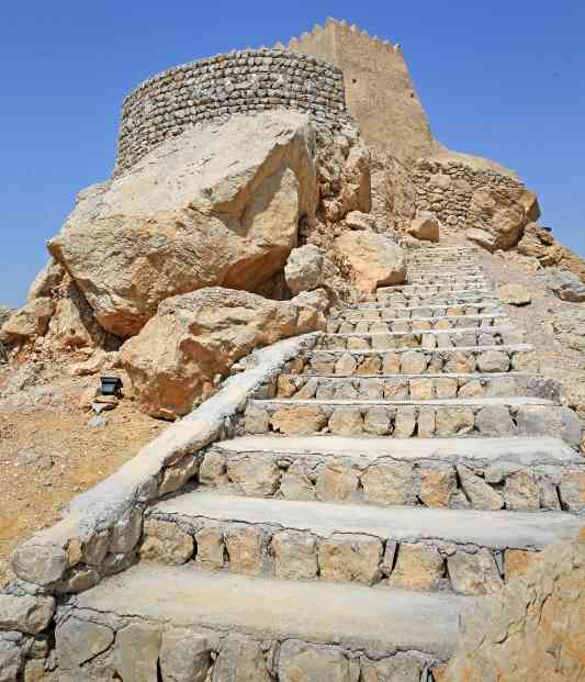 كما بنيت أبراج مراقبة منفردة في مزارع النخيل نفسها ساعدت على تأمين وحماية المنطقة، وقد ضمن الاستخدام التكاملي للتحصينات الثلاثة «الحصن على قمة الجبل والسور وبرج المراقبة» الدفاع عن المنطقة الخصبة التي تضم القلعة حيث عدت تلك التحصينات خطاً دفاعياً أول.