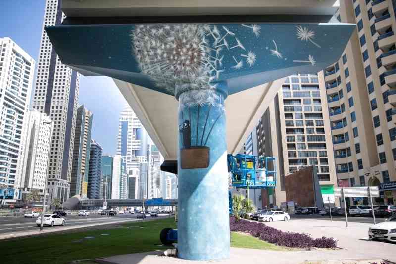جداريات كثيرة تغفو على جنبات شوارع دبي، ليس في جميرا فقط، وإنما تتوسع لتشمل طرقات الإمارة، ومجمعاتها السكنية، ومزاراتها السياحية، التي تنبض بالحياة، جل هذه الجداريات حملت تواقيع فنانين تشكيليين عالميين وآخرين محليين، ممن تركوا بصمتهم على الجدران، وهم الذين احترفوا أصول «فن الغرافيتي»، الذي اكتسب في دبي «صفة رسمية»، فلم يعد فيها مجرد «خربشات على الجدران»، بل فناً ناطقاً بالحياة، فيما ساهم «براند دبي»، الذراع الإبداعية للمكتب الإعلامي لحكومة دبي، في تكريس هذه الظاهرة الإبداعية، التي أنتجت جداريات رائعة امتدت على طول منطقة جميرا، ومناطق دبي الأخرى، إيماناً بأن «كل فن يحمل نوراً للآخر»، فجاءت هذه اللوحات لتبث روح الحياة في الجدران، وتحميها من الذوبان في ذاكرة النسيان.