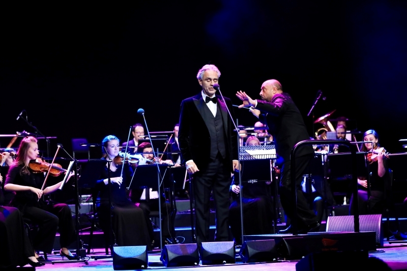 وشارك مع بوتشيلي في الحفل الذي استضافته هيئة الصادرات ووزارة الخارجية الإسرائيليتان وبنك هبوعليم الوفد الإسرائيلي المشارك في أسبوع جيتكس للتقنية، المغنية «تاليا أور» التي جاءت خصيصاً من ألمانيا للمشاركة بهذه المناسبة إلى جانب أعضاء من أوركسترا عربية ضمت أيضاً موسيقيين من المملكة المتحدة حضروا خصيصاً للمشاركة في هذا الحفل الذي شهد مجموعة من أشهر أغاني الفنان العالمي بوتشيلي ومن بينها «لا دونا أي موبيل»، و«أو سواف فانشولا»، و«آميزينغ غرايس»، و«نيسون دورما»، و«تايم تو ساي غودباي» (La Donna e Mobile, O Soave Fanciulla, Amazing Grace, Nessun Dorma and Time To Say Goodbye). كما حضر الحفل عدد من كبار رجال الأعمال ومسؤولين حكوميين من حول العالم.