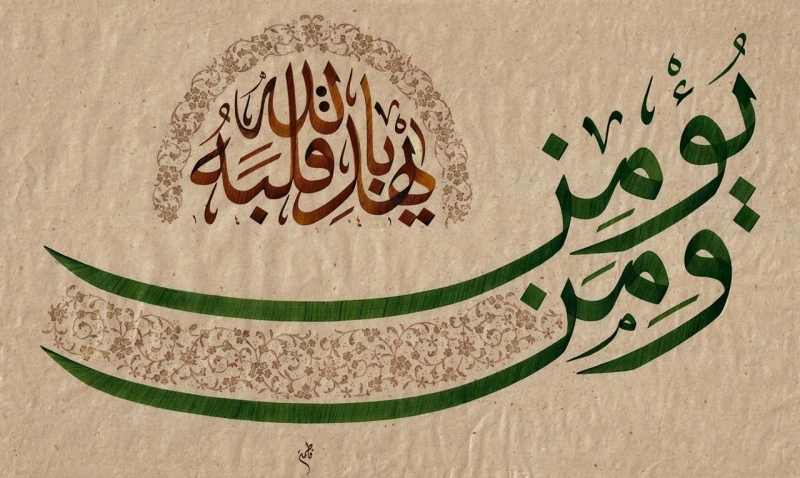ويشارك الخطاط عمران البلوشي بعملين الأول بعنوان «نداء الأنبياء» مستوحى من قصة دعاء «لا إله إلا أنت سبحانك إني كنت من الظالمين»، حيث عكست اللوحة بخلفيتها السوداء ظلمة بطن الحوت، وفعل الدعاء كما قال البلوشي في صوت، والصوت عبارة عن موجات فيها نداء، حيث عبّر عنها بطريقة الكتابة مستخدماً اللون الأبيض، وهو لون الحياة، أما عمله الثاني فهو يعكس حبه للخطوط القديمة، لاسيما الخط الكوفي الذي يتميز بحرف الألف إضافة إلى تميزه عن غيره من الخطوط بالحرية فلا توجد قيود كالخطوط الأخرى، حيث كتب العمل بالخط الكوفي كما في القرن الثالث الهجري.