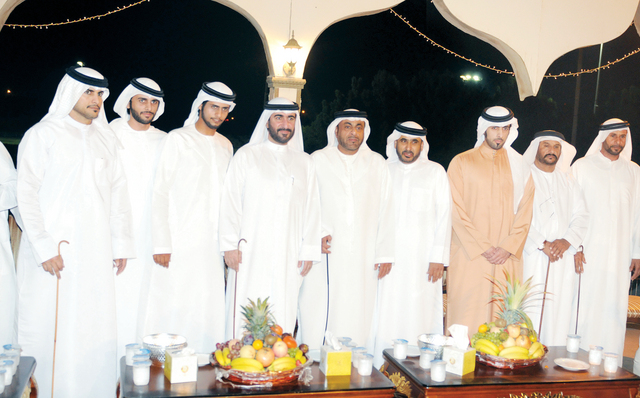 حضر الشيخ ماجد بن سعيد النعيمي رئيس ديوان حاكم عجمان الحفل الذي أقيم بمناسبة زفاف سلطان محمد سعيد بن زايد الكتبي الى كريمة محمد حمد بن راشد بن بليشة الغفلي في قاعة النورس في الشارقة.