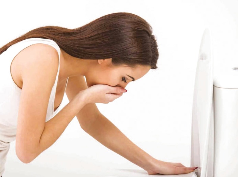 2. تقيؤ مفرط ومستمر أو الشعور بالحاجة للتقيؤ، حيث يعد التقيؤ مفرطاً في حال حدوثه أكثر من ثلاث مرات في اليوم.