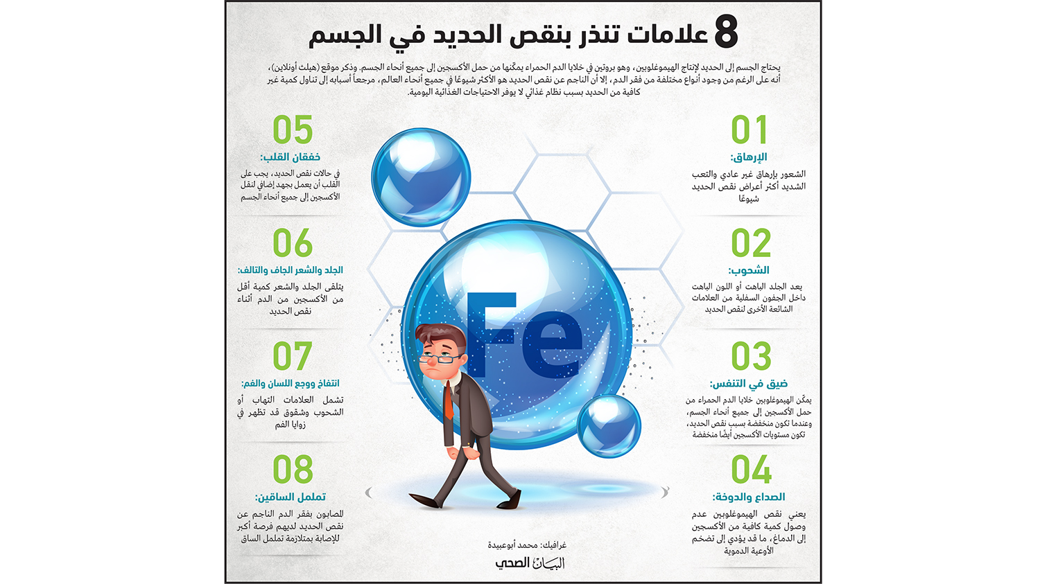 في حالات نقص الحديد، يجب على القلب أن يعمل بجهد إضافي لنقل الأكسجين في جميع أنحاء الجسم