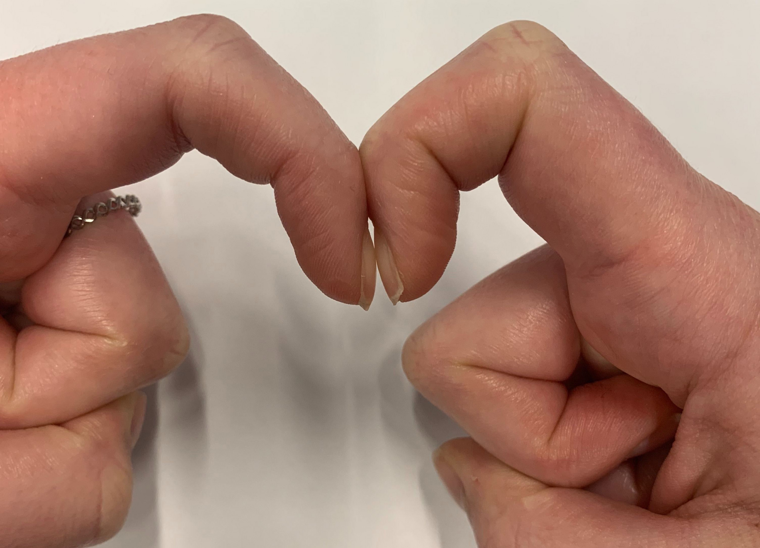 لكن إذا أجريت الاختبار وجمعت أصابعك معًا، ولم تعثر على الماسة الصغيرة بين أصابعك، فيجب أن تقلق بشأن تعجر الأصابع.