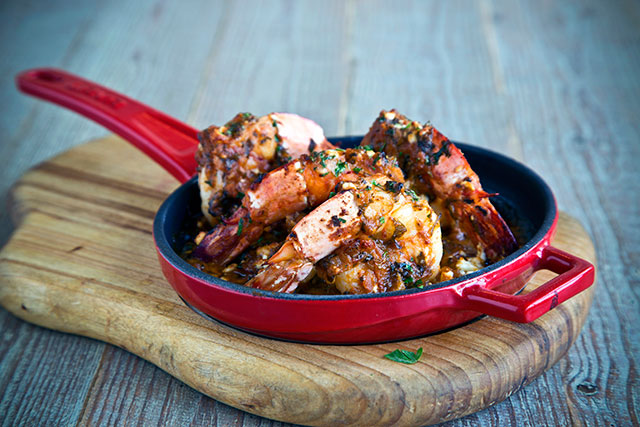 تُسخَّن القدر ويُضاف زيت الزيتون، يُقلّى البصل والثوم، يُضاف العسل حتى يصبح بنيّ اللون، يُضاف معجون الطماطم ويُقلّى لمدة 5 دقائق إضافية حتى يُطهى، تُضاف الطماطم الكبيرة والأعشاب والتوابل ومرق الجمبري، يُغلى المزيج حتى تصبح صلصة الطماطم سميكة، في مقلاة، تُشوى 10 قطع جمبري كبيرة سريعاً ثم تضاف الصلصة وجبنة الفيتا، وتُمزج المكونات حتى تذوب الجبنة، توضع المقلاة في الفرن، ويُشوى الجمبري لخمس دقائق بالضبط على درجة حرارة 180 مئوية.