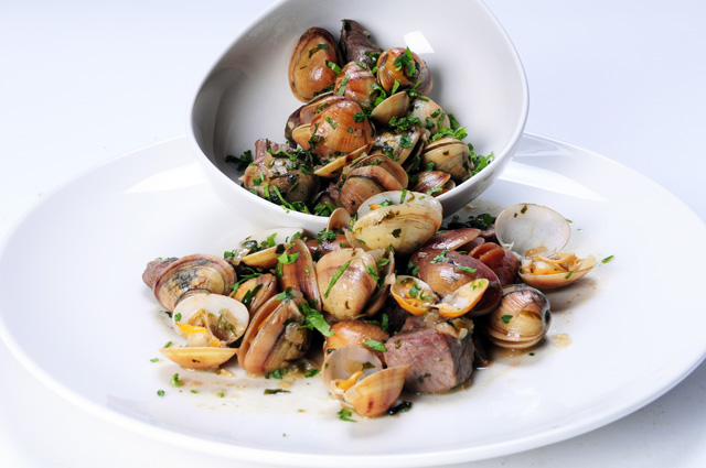 350 غ بلح البحر طازج، 60 غ زيت الزيتون، 5 غ فلفل، 5 غ ملح، 20 غ ثوم مقشور، 40 غ أوراق الكزبرة الطازجة، 20 مل عصير الليمون.