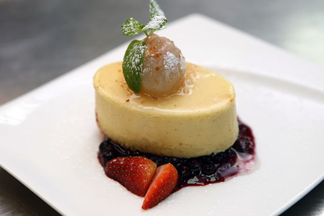 حضري كريم العسل الذي يوضع فوق الفانيلا. ضعي فيه السكر ثم الماء وابدئي بتحريك الإناء. حرِّكي بملعقة خشب لمدة 3 دقائق. آتي بـإناء فارغ لتصبي عليه الكريم. سخني السكر ليحترق قليلا بعد أن يكتمل تجميد الفانيلا. ضعي الفراولة وقطعة حلوى وغضناً من النعناع للزينة.
