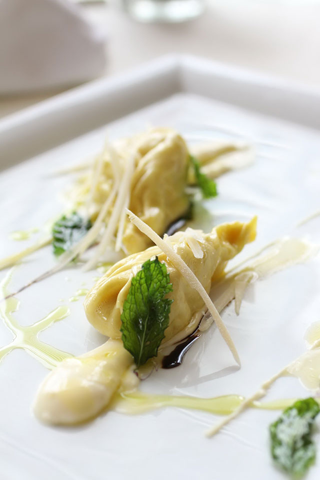 50 غ جبنة ريكوتا بقر،25 غ جبنة بيكورينو،80 غ خرشوف،5 غ أوراق نعناع،2 غ كمأة سوداء،80 غ زبدة، 10 غ كريمة طبخ،3 غ ملح،3 غ فلفل أسود،