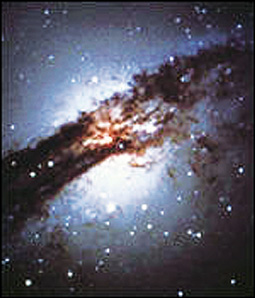 رصد تلسكوب شاندرا الذي يعمل بالاشعة السينية نفثات غازية فائقة الحرارة وهي تندلع من مجرة (قنطورس. أ) الاستثنائية. وتظهر الصورة الجديدة التدفقات الغازية ممتدة على مسافة 25 الف سنة ضوئية من مركز المجرة . وتتميز مجرة (قنطورس . أ) التي تبعد عن الارض حوالي 11 مليون سنة ضوئية بنشاطها الانفجاري الذي يجعلها موضوعا دائما لاهتمام الفلكيين. وتظهر في الصورة ايضا مجموعة مذهلة من منابع الاشعة السينية المتعنقدة حول نواة المجرة, حيث يعتقد وجود ثقب اسود عملاق. ويعتقد بعض الفلكيين ان دفقات الاشعة السينية (اشعة إكس) وعنقود المنابع قد تكون ناجمة عن تصادم هائل بين مجرتين حدث قبل مئة مليون عام من الآن. وقال الدكتور ايثان شراير, من معهد علم التلسكوبات الفضائية: (انها حقا صورة عظيمة .. فقد كنا نحاول منذ 20 عاما التوصل الى فهم مصادر الاشعة السينية التي يمكن رؤيتها في تدفقات مجرة (قنطورس. أ) واخيرا عرفنا الآن ان انبعاثات اشعة إكس تنتج عن الكترونات فائقة الطاقة تدور لولبيا حول حقل مغناطيسي) . اشعة اكس تصدر عن تدفقات غازية تصل حرارتها الى ملايين الدرجات
