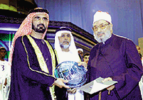 محمد بن راشد خلال تكريم القرضاوي شخصية العام الاسلامية: واجب علماء الدين تصحيح اخطاء السياسيين, القرضاوي: جائزة القرآن رد على كبير حاخامات اليهود