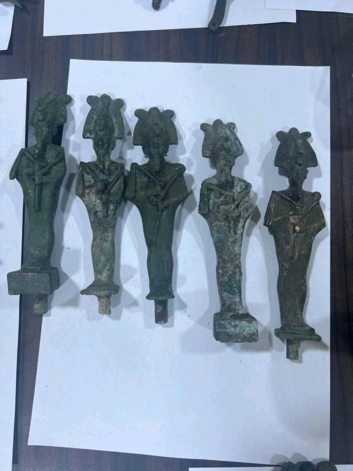 ووفقًا لتقرير اللجنة، فإن من بين المضبوطات تماثيل وتمائم قديمة مثل حتحور وحورس، ومفتاح الحياة "عنخ"، إلى جانب خواتم وأقراط وبروشات ذات طابع تاريخي فريد.
