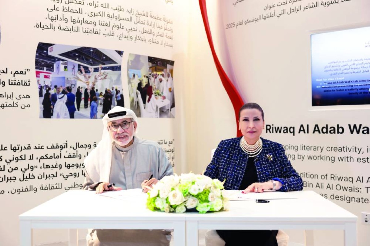 ووقع المذكرة، هدى إبراهيم الخميس كانو، مؤسس مجموعة أبوظبي للثقافة والفنون ومهرجان أبوظبي، وإبراهيم الهاشمي، المدير التنفيذي لمؤسسة سلطان بن علي العويس الثقافية، في جناح المجموعة، ضمن مشاركة مبادرتها «رواق الأدب والكتاب»، تحت عنوان «الشاعر سلطان بن علي العويس: العصي ُّعلى الغياب»، إحياءً للذكرى المئوية لميلاد الشاعر الراحل، التي أعلنتها اليونسكو لعام 2025، احتفاءً بإرثه الثقافي العميق الذي لا يزال يشكل أحد ركائز المشهد الأدبي العربي المعاصر.