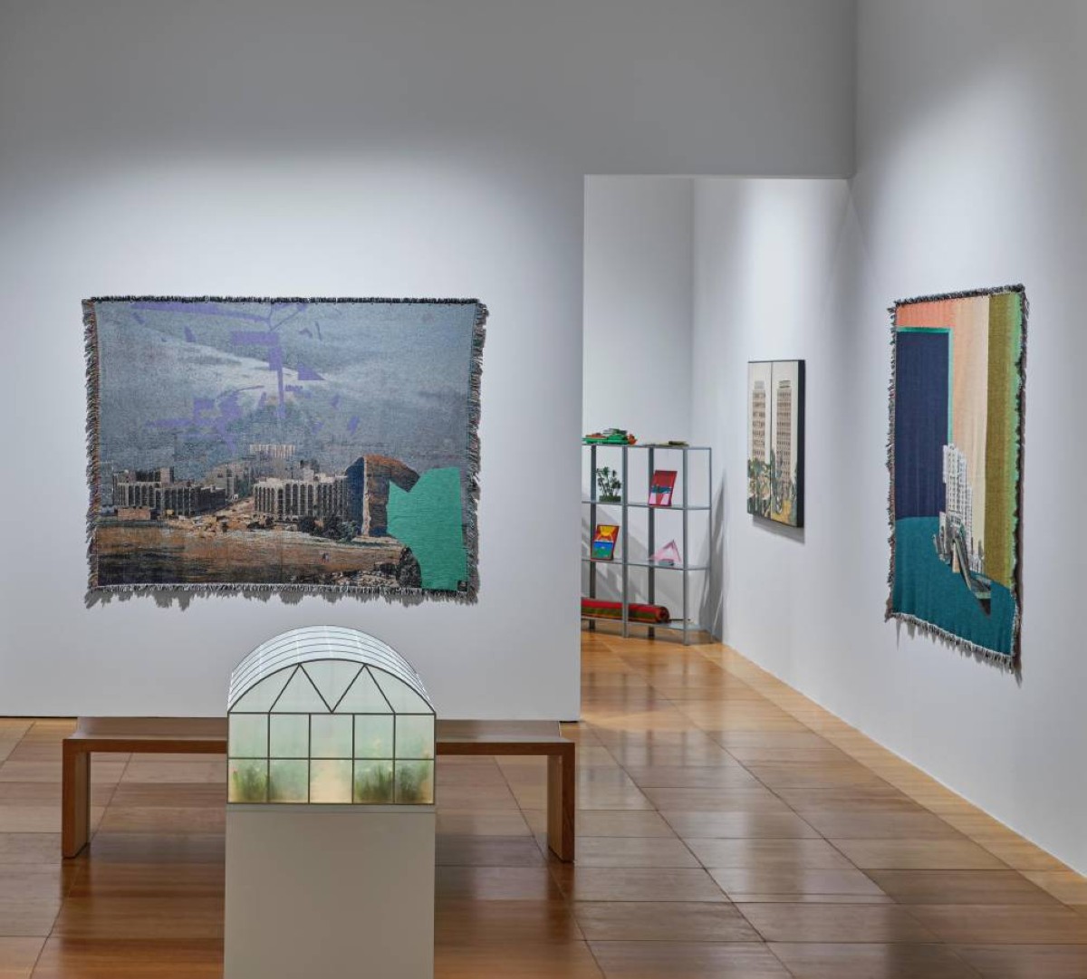ويقدّم المعرض لأول مرة مشروعها الجديد «شروط مناخية» الذي تبلور خلال إقامتها في أبوظبي، حيث لاحظت تكيّف المباني في الإمارات مع واقع الأنظمة المناخية القاسية التي تتقاطع في الخليج. كما تتجسد في أعمالها دراسات عن تشكّل الهوية العربية في المخيلة الجماعية، ففي عملها «افتعال» (2017)، ترصد كيف يصبح الأفراد جزءاً من اللحظات السياسية الأوسع.