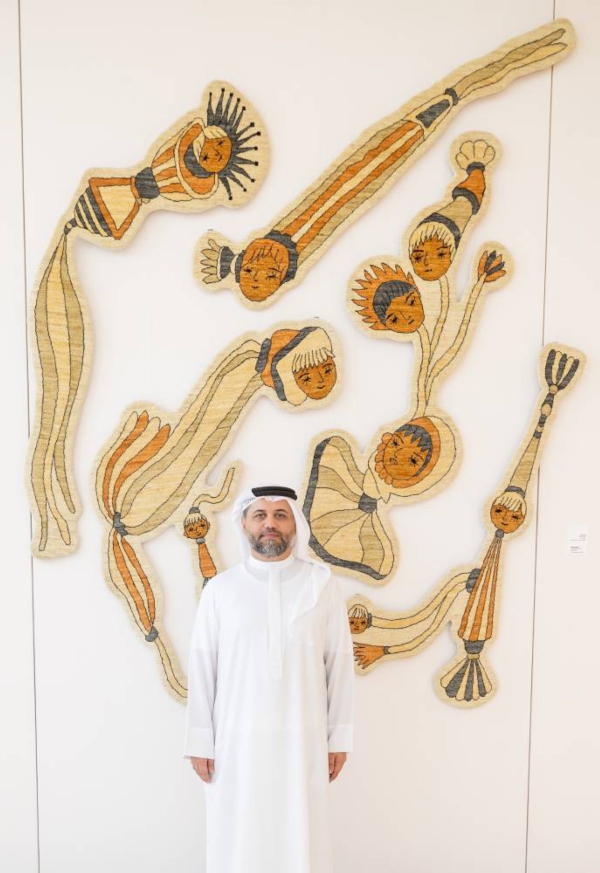 تبدو السجادة في هذا العمل كأنها استعارة فنية تختصر مسار الإنسان من الولادة حتى الاستقلال، لكنها في يد الفنان الإماراتي ناصر نصر الله تتحول إلى عمل رمزي غنيّ بالمعاني، يجمع بين البساطة الشكلية والتعقيد المفاهيمي، في مشروع بعنوان «العائلة المتجولة»، قُدم ضمن معرض «نسيج: خيوط من الأمل» الذي يعود ريعه لصالح الطفولة، بالتعاون مع مؤسسة بيئة ومبادرة الشيخة فاطمة بنت محمد بن زايد، والمعرض تقييم فاطمة ديماس، ونُفذ بالتعاون مع حرفيات من أفغانستان.