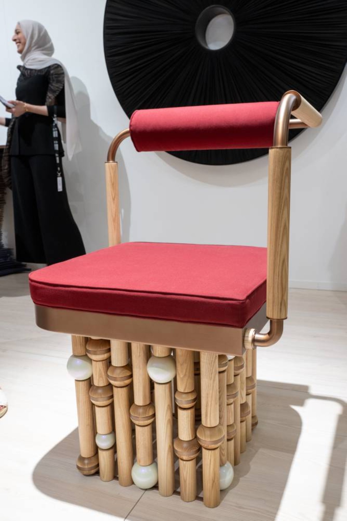 في الجانب الآخر، تشترك حنان رفيعي، مصممة، مع زميلتها آمنة الشامسي في عمل مشترك هو تصميم على شكل كرسي عرضته في أسبوع دبي للتصميم، مؤكدة أهمية الحدث بالنسبة للمصممين، وقالت: «فكرة العمل مستلهمة من طبيعة الحياة في الإمارات قديماً، وتحديداً من يوميات الغوص، حيث كان الرجال يغيبون في البحر لأشهر، بينما عوائلهم تنتظرهم، وسط هواجس الفقد، فرحلة الغوص تنطوي على أخطار كثيرة، ولهذا فإن الكرسي يمثل حالة الانتظار القلق، وهو هنا كرسي غير مريح، لأن الانتظار من هذا النوع هو غير مريح بطبيعته».