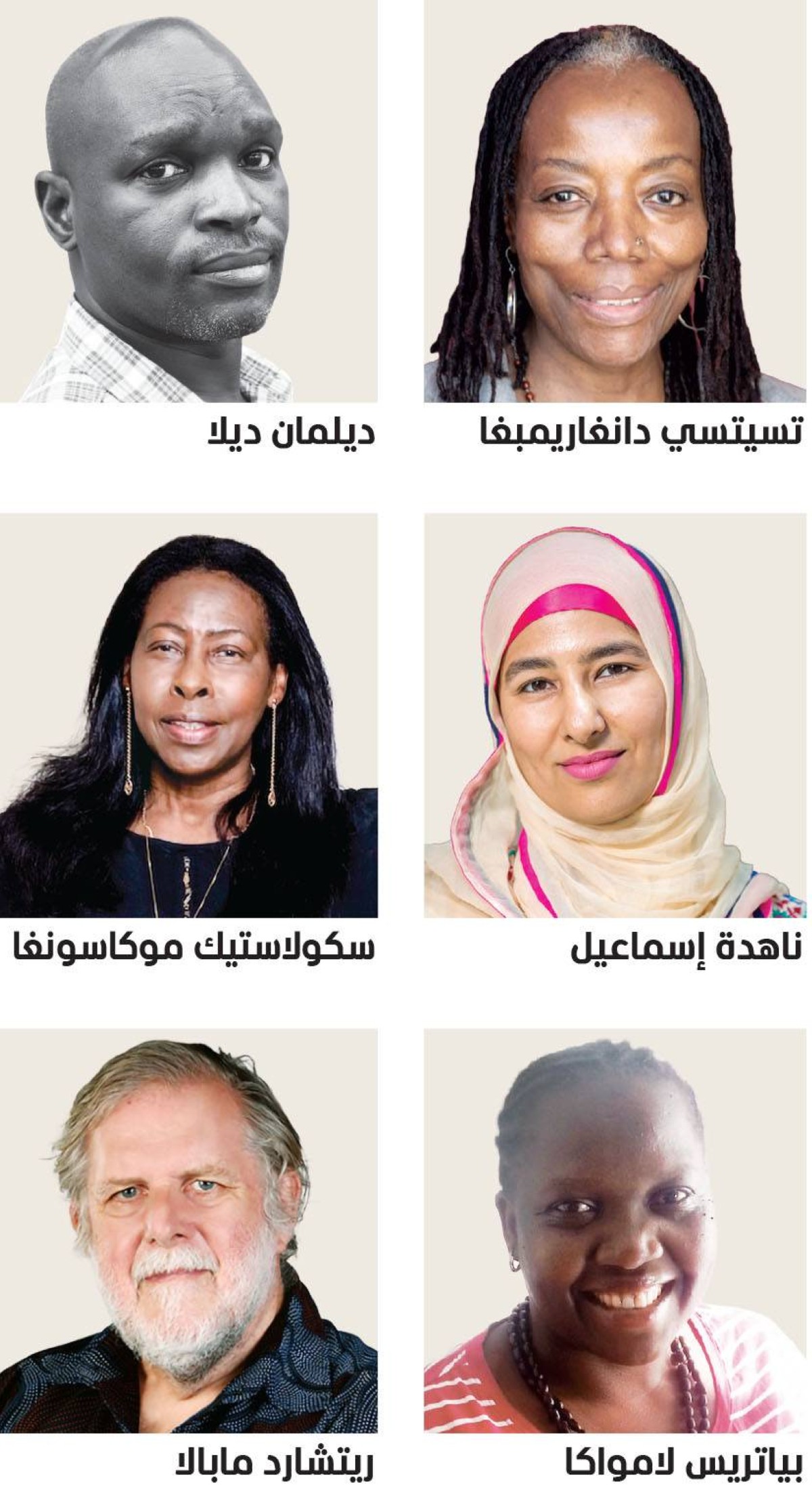 وتشمل القائمة أيضاً كتّاباً من شرق أفريقيا، من بينهم الكاتب وصانع الأفلام الأوغندي ديلمان ديلا، والكاتبة الأوغندية بياتريس لامواكا، رئيسة مركز القلم – أوغندا وعضو مجلس إدارة منظمة القلم الدولية، إضافة إلى الروائية الأوغندية البارزة غوريتّي كيوموهيندو، المديرة المؤسسة لعدد من المبادرات المعنية بدعم الكتّاب الأفارقة.