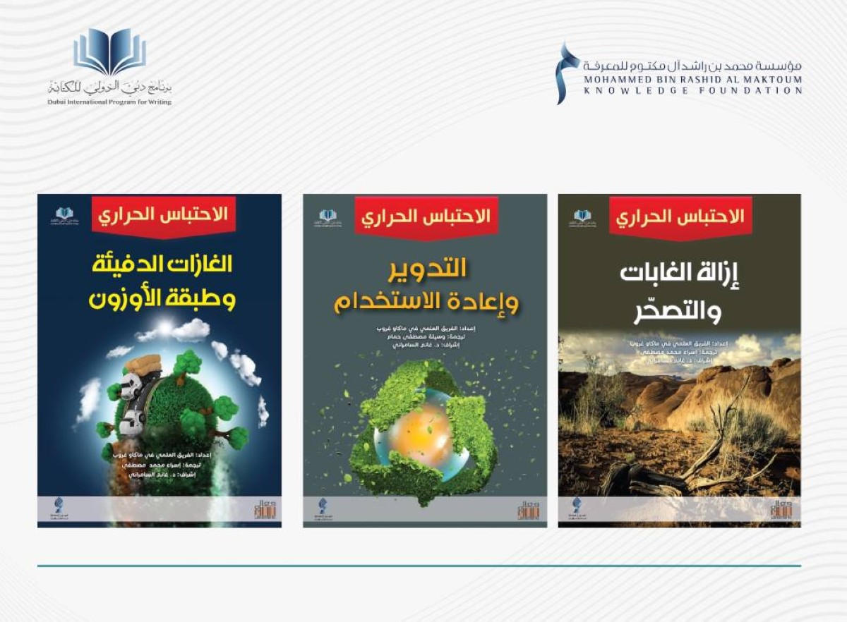 ضمن مخرجات برنامج دبي الدولي للكتابة التابع لمؤسسة محمد بن راشد آل مكتوم للمعرفة، أصدرت المؤسسة 3 من الكتب العلمية باللغة العربية حول تحديات الاحتباس الحراري والحلول المطروحة لمواجهة هذه التحديات.