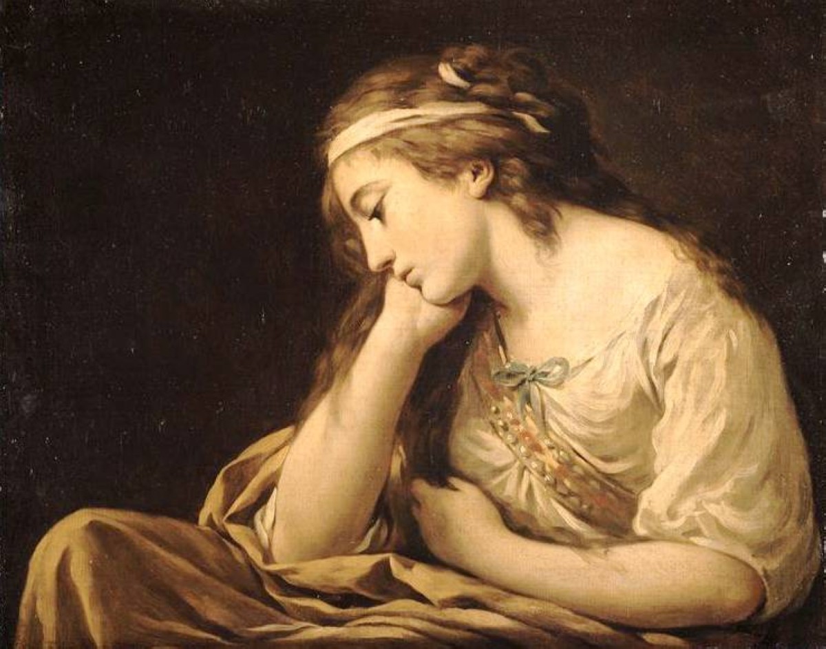 و تصور اللوحة التي تحمل توقيع العام 1785 بعنوان " المنغوليا" للفنان لويس-جان-فرانسوا لاغرينيه ، ابعادا مميزة لطبيعة وماهية الحزن العميق لسيدة تجلس ضد خلفية مظلمة، وتمسك رأسها بذراعها وهي تتأمل، وتعبير وجهها يوحي بأن أفكارها ربما ليست سعيدة جدًا. ومع ذلك، هناك جمالٌ في هذه الوضعية الحزينة.