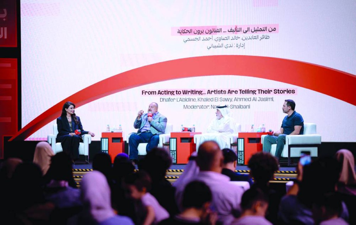 وشارك النجم التونسي ظافر العابدين فصولاً من رحلته الإبداعية بين التمثيل والكتابة والإخراج، كاشفاً عن فلسفة خاصة ترى في الحكاية أكثر من مجرد سردٍ للأحداث، بل وسيلة لاكتشاف الذات والآخر، قائلاً: «دائماً عندي شغف أن أحكي، أن أقول الحكاية بوجهة نظري أنا، فالحكاية يمكن أن تُروى بطرق مختلفة بحسب من يرويها»، هذا الشغف هو ما قاده نحو الكتابة، التي يعتبرها منطقة أعمق في التعبير عن ذاته.