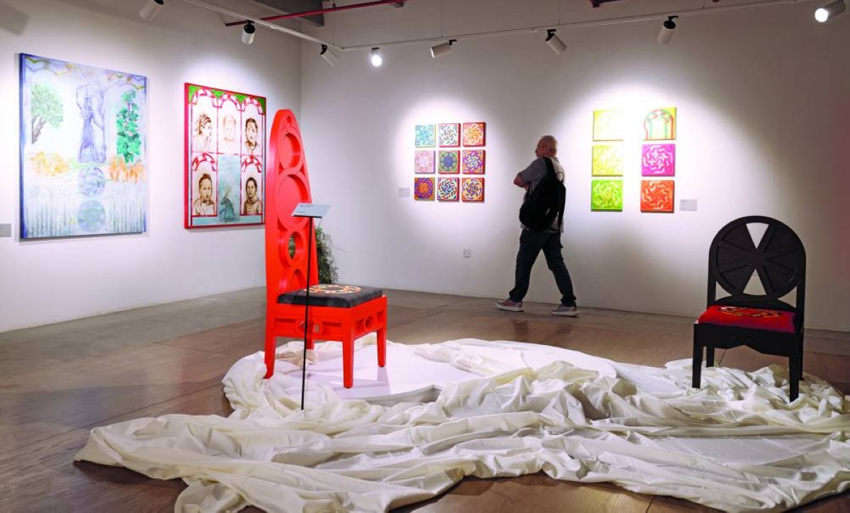 ولم يتوقف إبداع مخلوف عند حدود «الكانفاس» التقليدي، بل توضح أنها تعتمد تقنية «المزيج»، فتدمج «الأكريليك» مع مواد أخرى، ما يمنح أعمالها قواماً فريداً ونتائج فنية متميزة على السطح، مستعرضةً قطعاً من الكراسي قامت بتحويلها إلى تحف فنية ضمن تجربتها الإبداعية التي نقلت عبرها الفن من الإطار الجداري إلى القطع المجسمة.