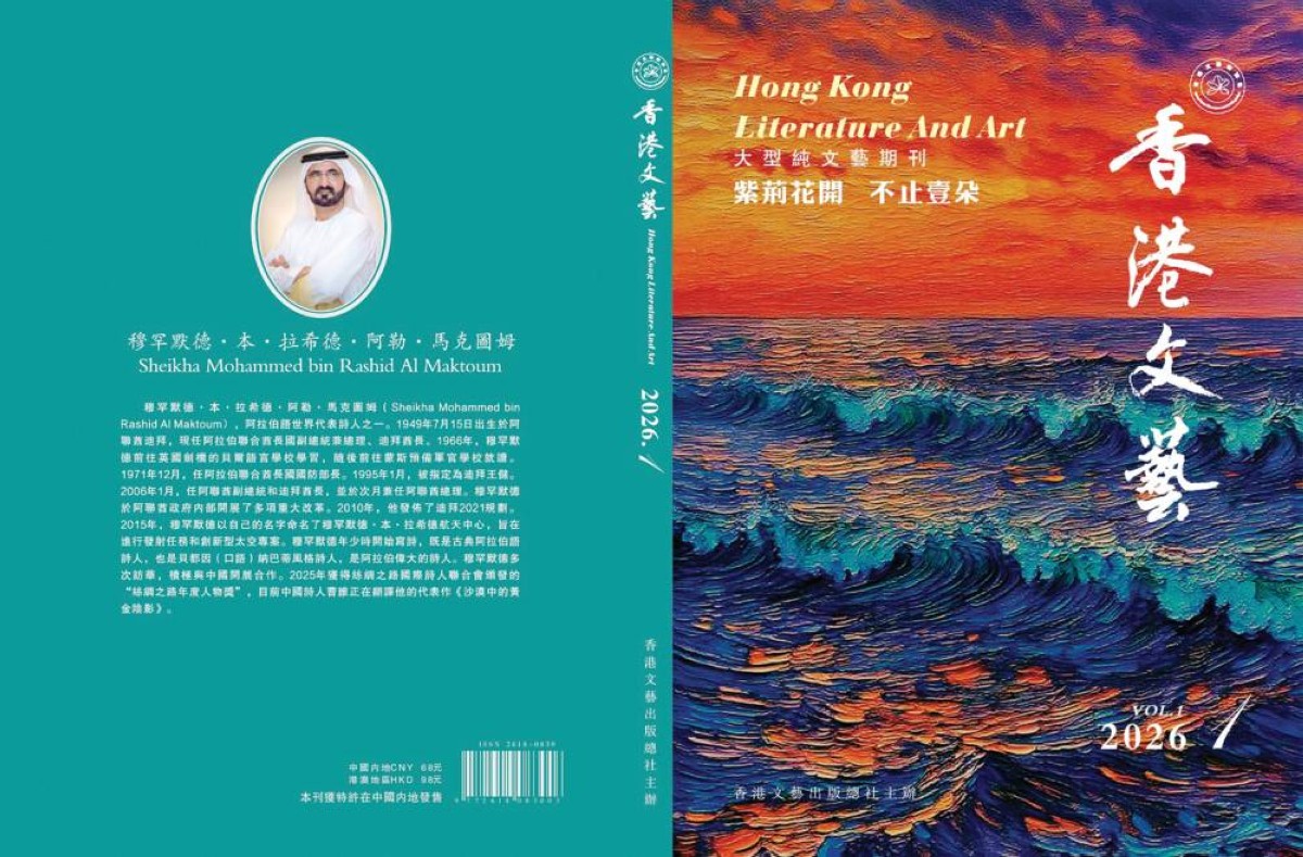 في خطوة تعكس المكانة السامية والتقدير العالمي اللذين يحظى بهما صاحب السمو الشيخ محمد بن راشد آل مكتوم، نائب رئيس الدولة رئيس مجلس الوزراء حاكم دبي، رعاه الله، كأحد أبرز القادة الملهمين والرموز الأدبية في العالم العربي، اختارت مجلة «هونغ كونغ للأدب والفن» الدورية المتخصصة في الآداب والفنون صورة سموه لتتصدر غلاف عددها الأول لعام 2026.
