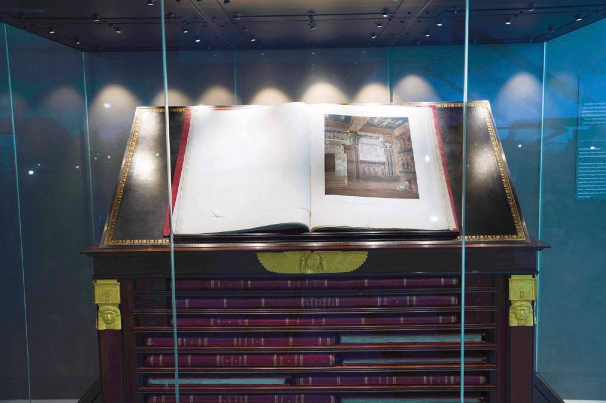 ومن بين أبرز المقتنيات النادرة في المكتبة، يبرز كتاب «وصف مصر (1809 - 1828)»، الذي يُعد من أضخم الأعمال العلمية الاستكشافية في التاريخ.