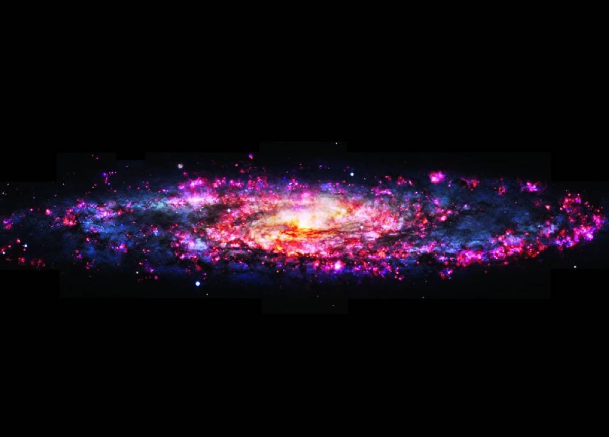 احتاج الباحثون لأكثر من 50 ساعة باستخدام جهاز مُستكشف الطيف متعدد الوحدات (MUSE) على التلسكوب الضخم التابع للمرصد الأوروبي الجنوبي، ثم قاموا بتجميع أكثر من 100 صورة، لتغطية مساحة المجرة، التي يبلغ عرضها حوالي 65,000 سنة ضوئية.