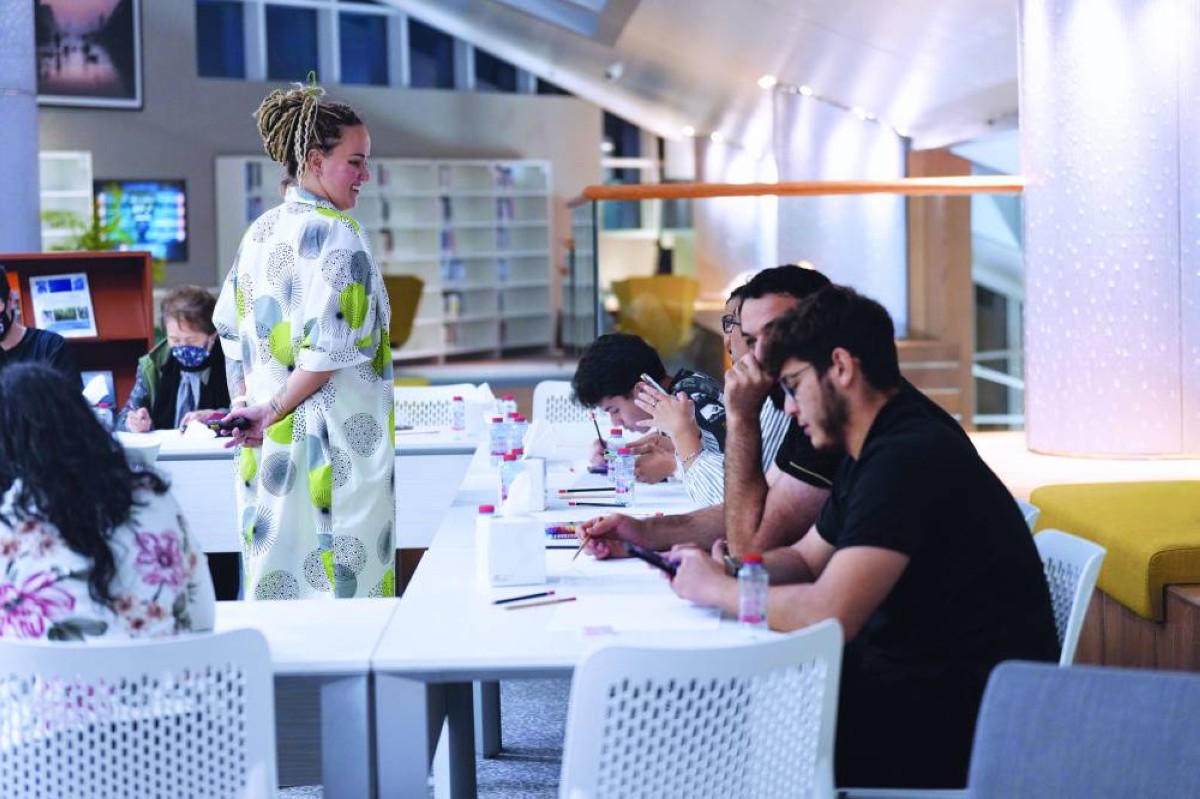 جانب من ورشة «العالم بين الخطوط والرموز»
