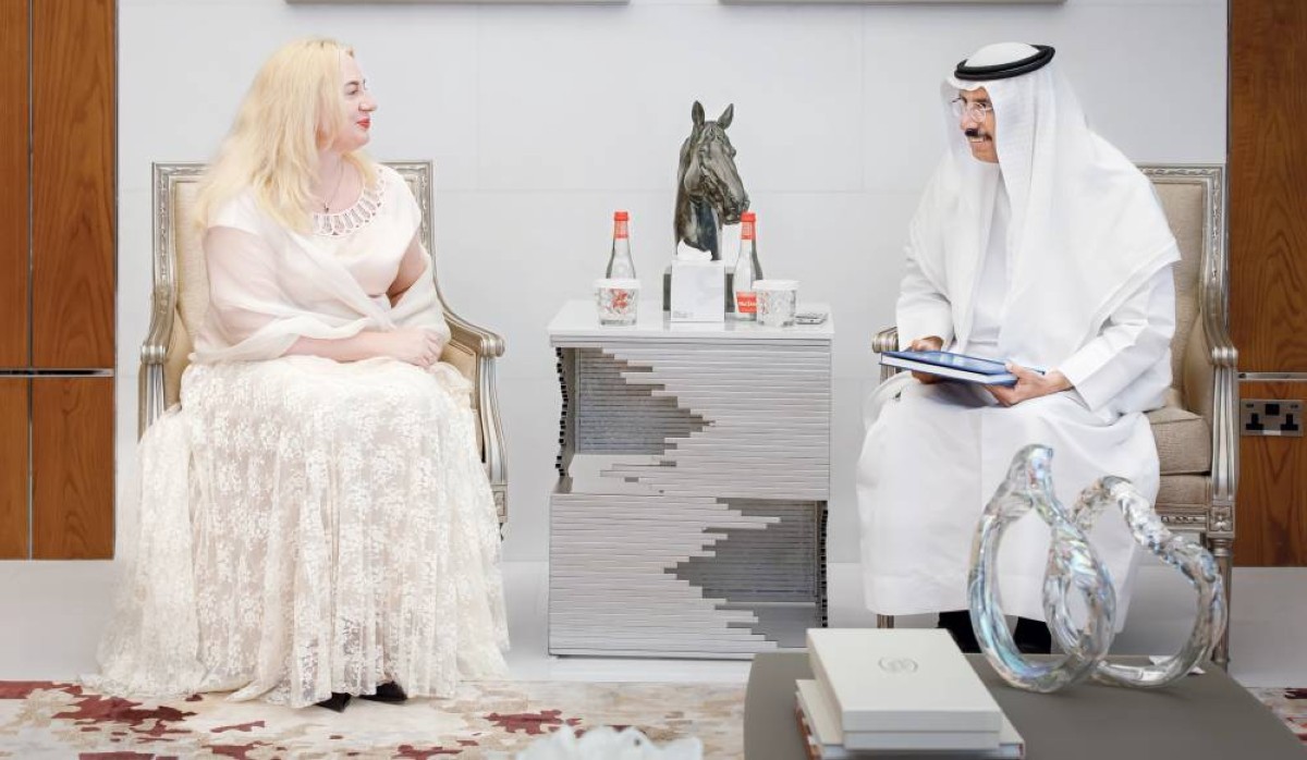 محمد المر خلال استقباله جانا أليكسييفا والوفد المرافق
